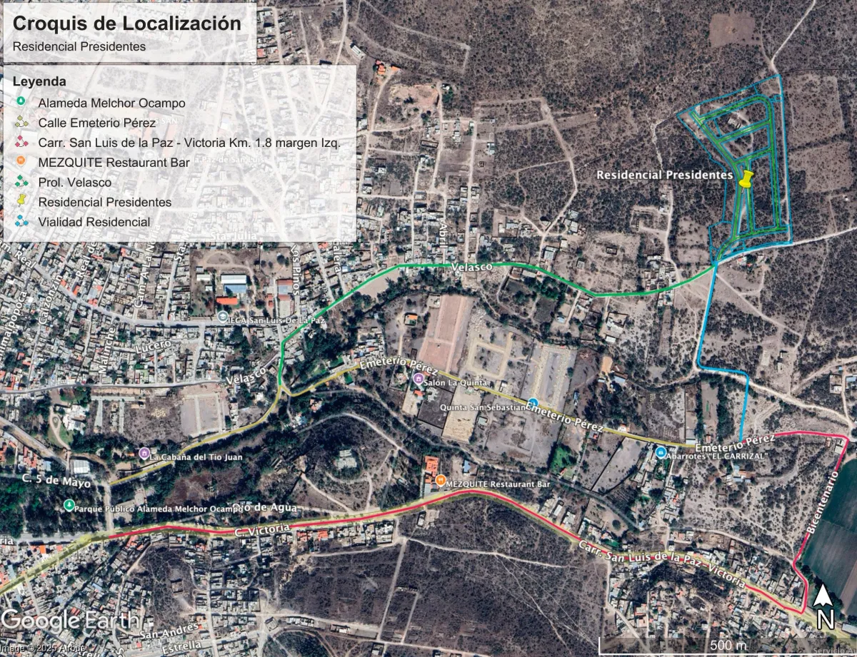 Residencial Presidentes se encuentra en San Luis de la Paz.Un entorno conectado, rodeado de servicios, vialidades clave y espacios naturales que elevan tu calidad de vida desde el primer día.
